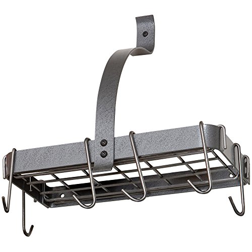Kitchen organizer measures 14 inches long by 7 inches deep by 16 inches high making it perfect for tight kitchen spaces; includes 8 matching pot hooks by Enclume