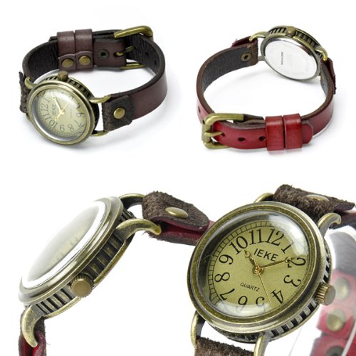 원본상품명: ハンドメイド腕時計 アンティ?ク調 レザ?ウォッチ 男女兼用腕時計 本革ベルト ダメ?ジ加工 手作り腕時計 (ワイン)