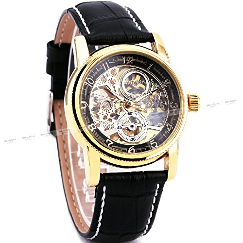 -. Title : ORKINA Men Classic Luxury Skeleton Mechanical Watch Automatic-self-wind Leather Strap Fluorescence Dial + BOX