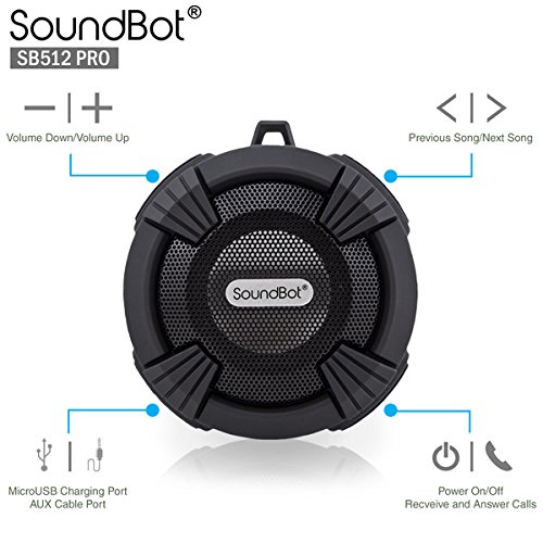 - Title : SoundBot® SB512-PRO HD Premium Water & Shock Resistant Bluetooth Wireless Shower Speaker, Hands-Free Portable Speakerphone w/ Hi-Fi Output, Built-in Mic, 6Hrs Playtime