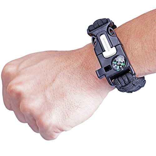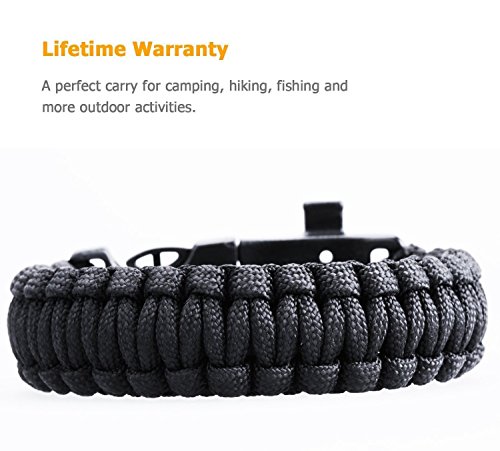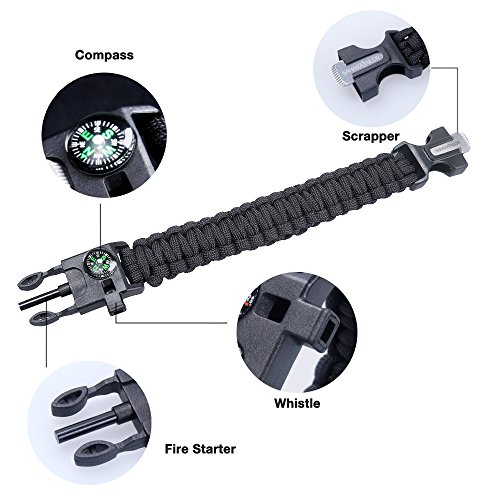5-IN-1 SURVIVAL KIT - The paracord bracelet features a flint fire starter, a scraper that can be used as a knife, ultra strong parachute, a whistle and a compass. Meeting most of your need to survive whenever you go camping, hiking, trekking, fishing, hunting and more outdoor activities.