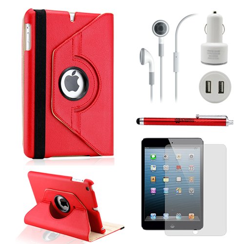 GEARONIC TM iPad Mini 5-in-1 Accessories Bundle Rotating Case for Business and Travel, Red