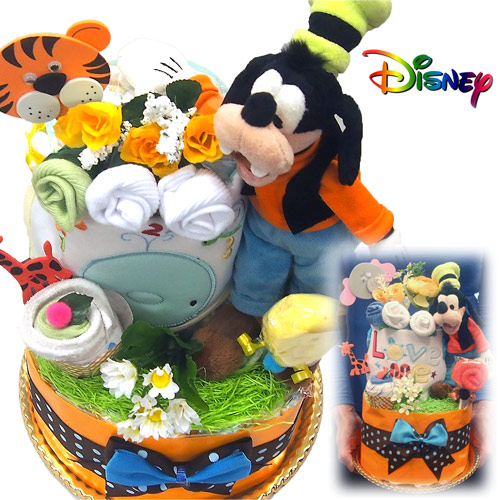 ★グーフィーたちがカクレンボ!してるよ!★ ★ キリンさんどこにかくれたのー! ★ ■■ < おむつケーキ の詳細です> ■■ ◆◆ 高さ約37cm・幅約 22cm テープタイプパンパース 26枚使用