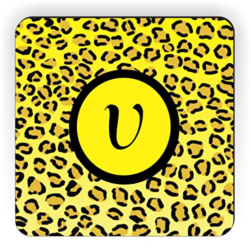 Rikki Knight Letter "V" Initial Yellow Leopard Print Monogrammed Design Square Fridge Magnet