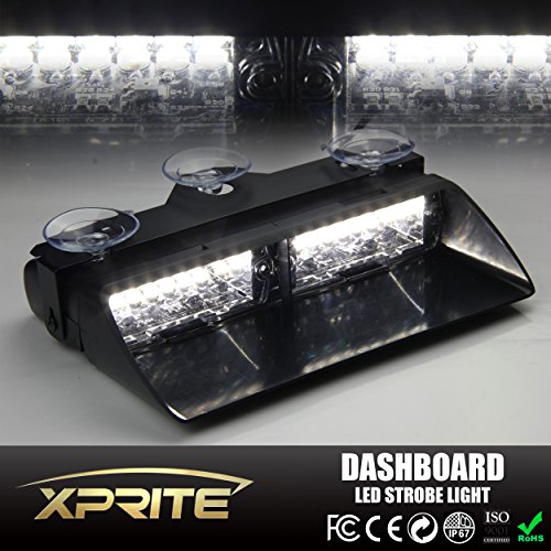 Xtreme® White 16 LEDs High Intensity LED Law Enforcement Emergency Hazard Warning Strobe Lights For Interior Roof / Dash / Windshield With Suction Cups