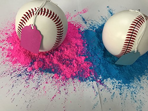 Gender Reveal Ball: Baseball, White, Ceramic, Smoke Ball, 2 Smoke Balls Pink and Blue- Great for Outside, Gender Reveal Party, and Kids.