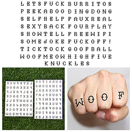 Tattify Funny Knuckle Temporary Tattoos - Knuckle Deep (Set of 17) - Other Styles Available and Fashionable Temporary Tattoos