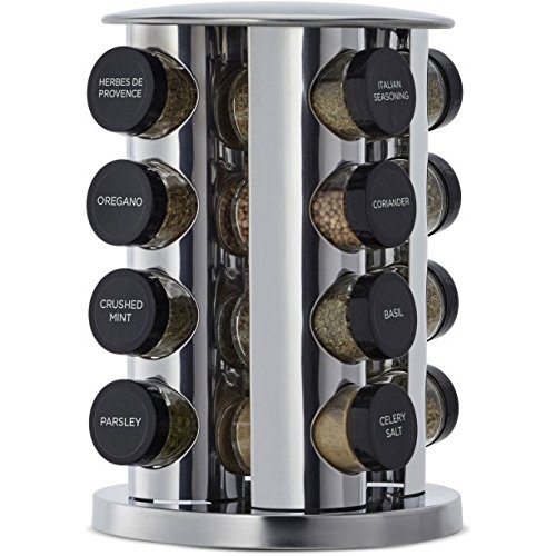 - The space-saving carousel design spins to keep the right herb or spice at your fingertips