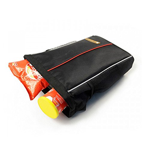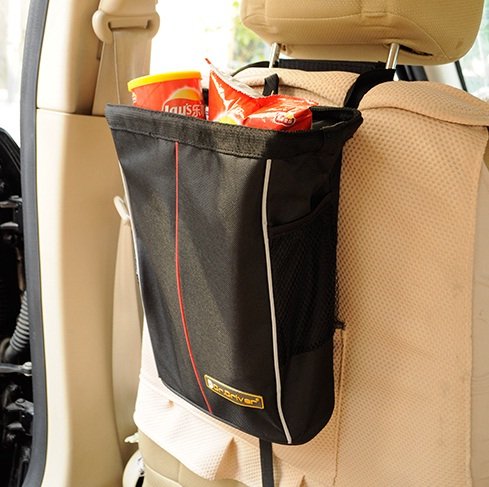 Keep your car neat and clean in style. This sleek, black, woven, cloth litter bag fits in all vehicles and pleases all passengers. A sturdy covered, metal framed close able top and reinforced seams with piping create a flexible receptacle that attaches securely to your car seat headrest/over the seat, in back or in front. Depending on your ride, your road trip and your passengers you may consider more than one