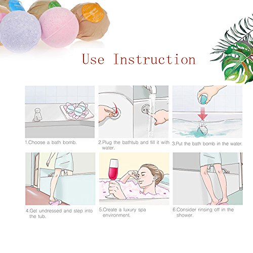 -. Feature : 【Natural & Healthy Safe Bath Bombs】-The bombs are handmade from natural ingredients including organic essential oils, Epsom salt, dead sea salt, Himalya salt, aP.R.Icot kernel oil and organic flowers petals. More healthy and safer, great for kids or adults. / 【Elegant Bath Bombs Gift Set】--- 6 Unique Fragrance bombs set in a box for you choose: Vanilla, Rose, Lavender, Chewing gum, Ocean and Sea. Different Aromas to select by your own mood. / 【For Relaxing and Skin Care】--- You can relax and revitalize your body and mind in the bath spa time. These bath bombs turn your tub water into a healthy soak that will help relieve aches and pains, ease muscle discomfort and moisturizing your skin. Make your skin feeling super soft and moisturized. / 【Must-have Bath Products】---This kind of bath bombs are No residue, no mess, just amazing fragrance, lovely color, soft skin, relaxation and a tiny flower to top it off . The fragrances were very pleasant and not too overpowering. / 【Luxury Gift for all Occasions】--- Great gifts for women, moms, teen girls, kids and men on Mother's Day, Father's Day, Valentines Day, Christmas, Birthday, bring the happy and comfortable bath time for your beloved one.