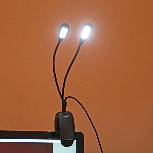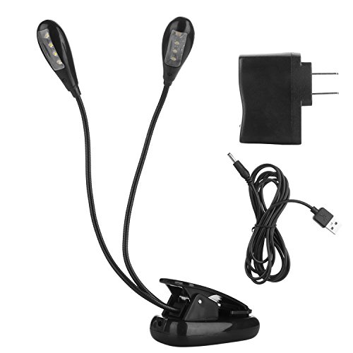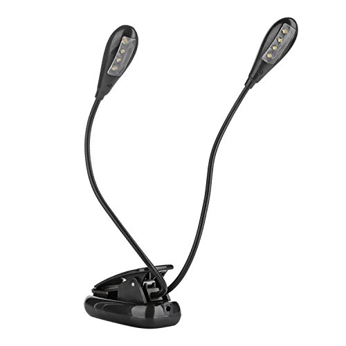 Kumeida 8 LED Book Reading Light, Flexible 2 Arm With Clip Stand 2-Level Brightness, Music Stand Lamp for Bed Desk Table BBQ Grilling Travel (Eye Care, Rechargeable, Portable, Long Lasting) (Black)