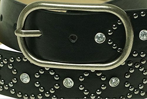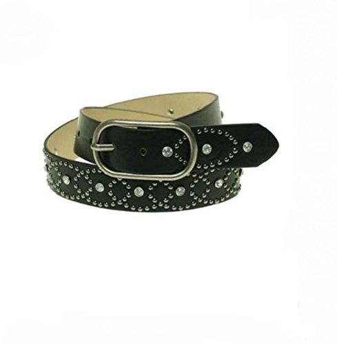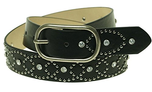Style Co. Women's Silver Rhinestone Faux Leather Pant Belt Black