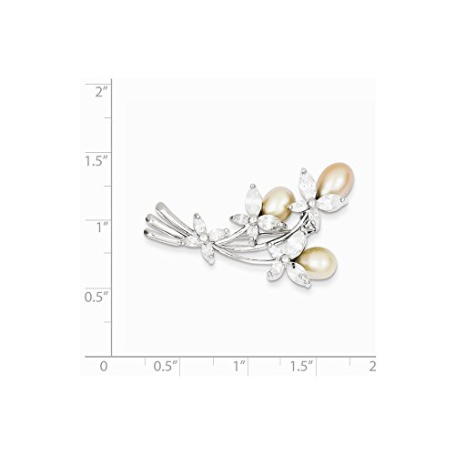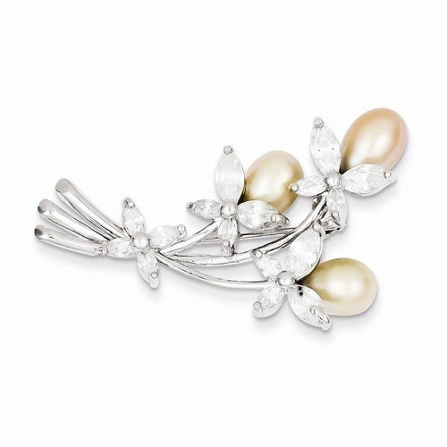 -. Title : Sterling Silver Rhodium Plated Freshwater Cultured Pearl & Floral Synthetic CZ Pin.
