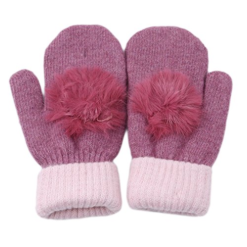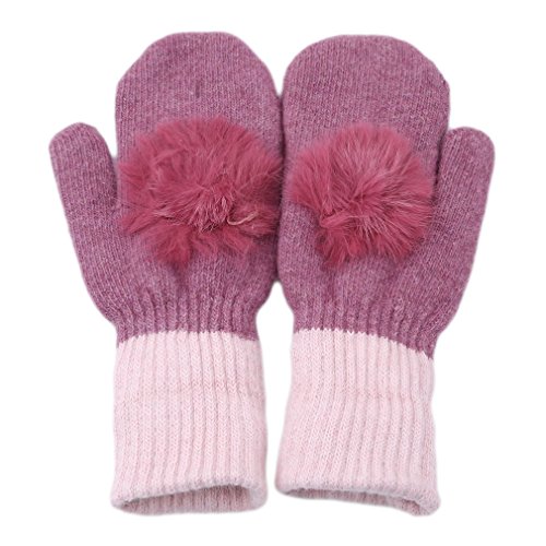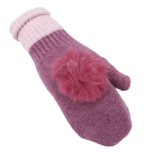 SONG LIN Double-Layered Warmer Winter Wool Gloves Soft Winter Gloves with Fur Ball For Girls Wo...