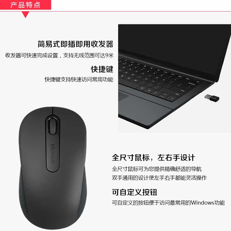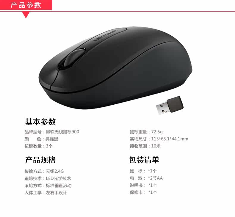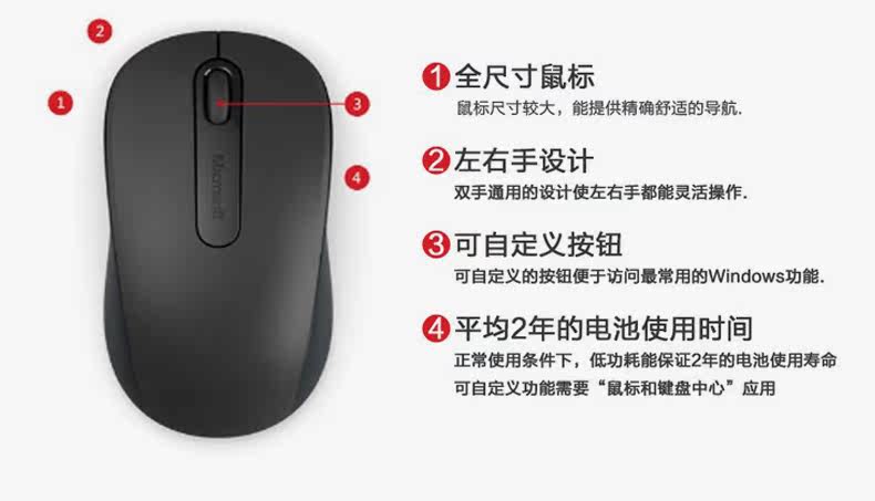 微软900无线鼠标USB大鼠标商务办公家用笔记本电脑台式机省电耐用
