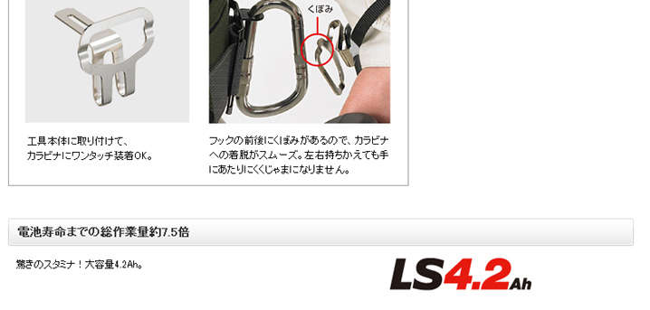 ●高容量化、新電池パックを搭載(LSタイプ4.2Ah)しています。