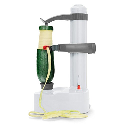 -. Feature : Totally hands free peeling, rotates and peels automatically. / Peels a potato in just under 10 seconds. / Peels potatoes, fruits and vegetables instantly at the push of a button. / The Robotized arm adjusts to every thickness, shape and textures: From potatoes to tomatoes to rutabaga and avocados, also citrus fruits. / Operates with a 6V adapter and can also function with 4*AA batteries (not included).