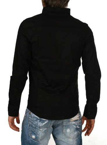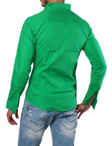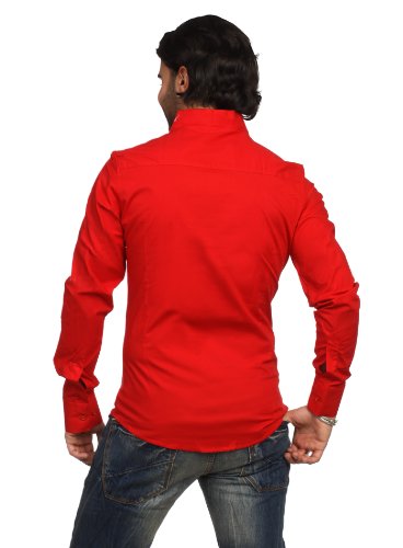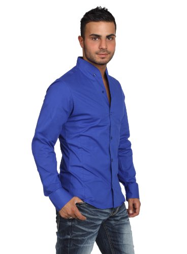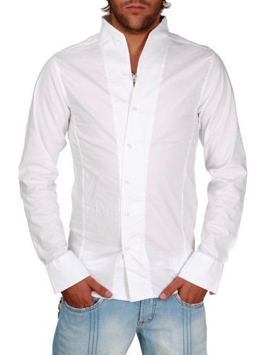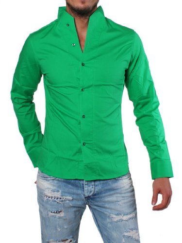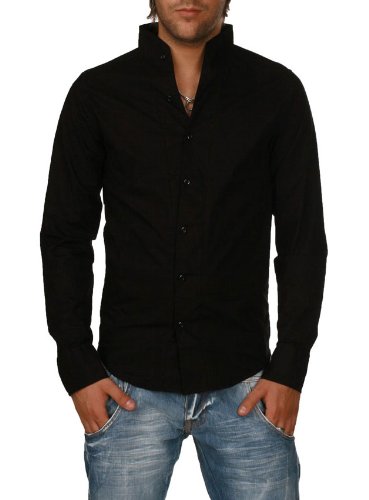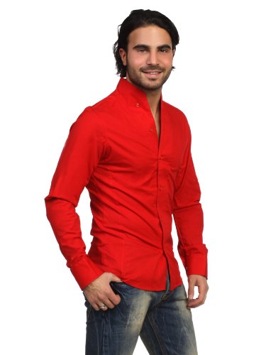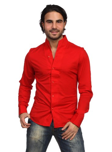 -. Title : Rerock Herren Stehkragen Uni Freizeit Hemd Slimfit tailliert langarm einfarbig 75110 Party Club