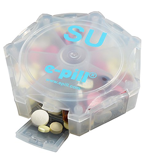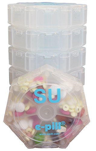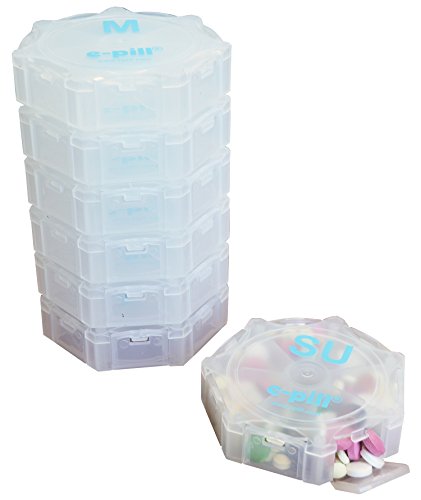 Studio : e-pill Publisher : e-pill Binding : Health and Beauty Product Description e-pill 7 x 7 Weekly Medication Organizer. Complete 7 x 7 System (SKU 841849) includes Seven (7) pillboxes each with Seven (7) doses / medication compartments per day. Each dose (pill compartment) holds 18 aspirin sized pills. Seven (7) pillboxes are included and can be stacked on top of one another. Organize all your daily medications once a week: Great pill organizer system for home, office or travel. 0 |