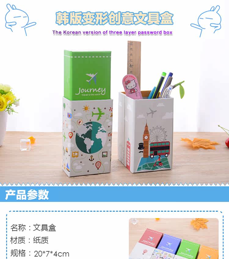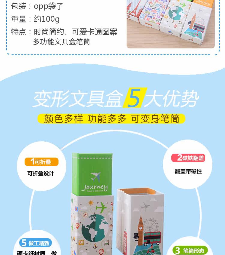 交通工具大集合飞机巴士火箭变形笔筒式文具盒创意