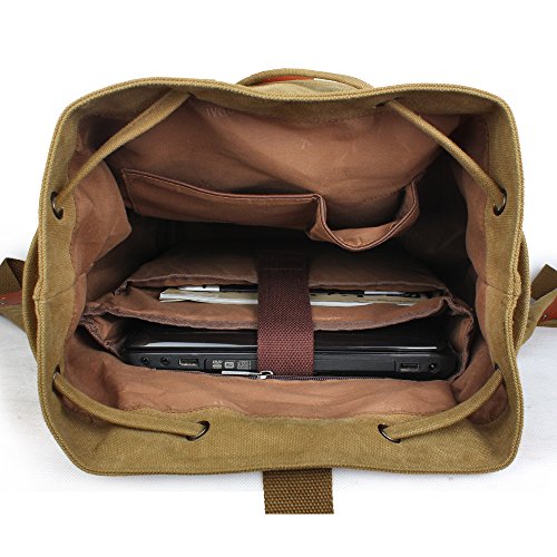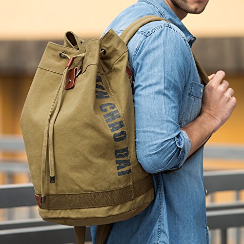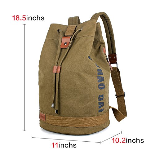 Key features of this canvas backpack:High quality cotton canvas(durable, thick and high density), vintage appearance, reasonable capacity and unique drawstring design.