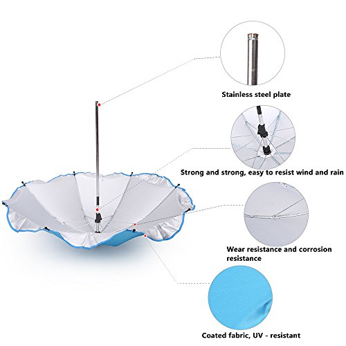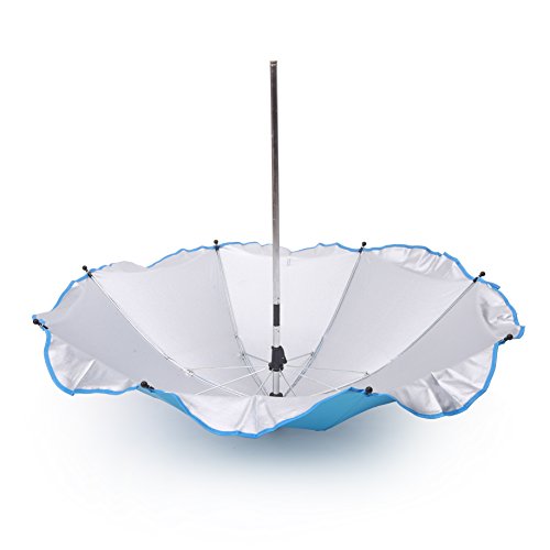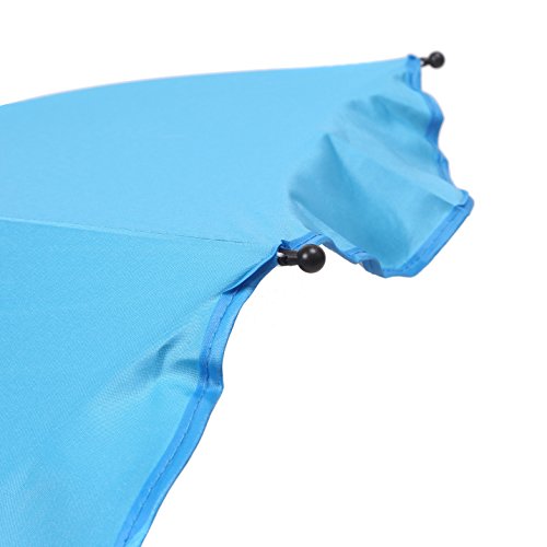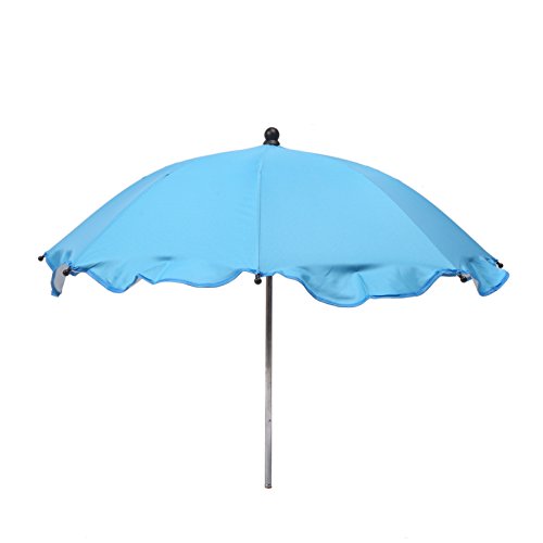 -. Feature : Material:Plastic+Metal / Size:65.5x72cm £¨open size£© / Color:Blue/Red/Pink/Green/white/ / The flexible arm allows for all angle positioning / The umbrella fits most pram buggies and simply attaches with a screw type fitting to the frame