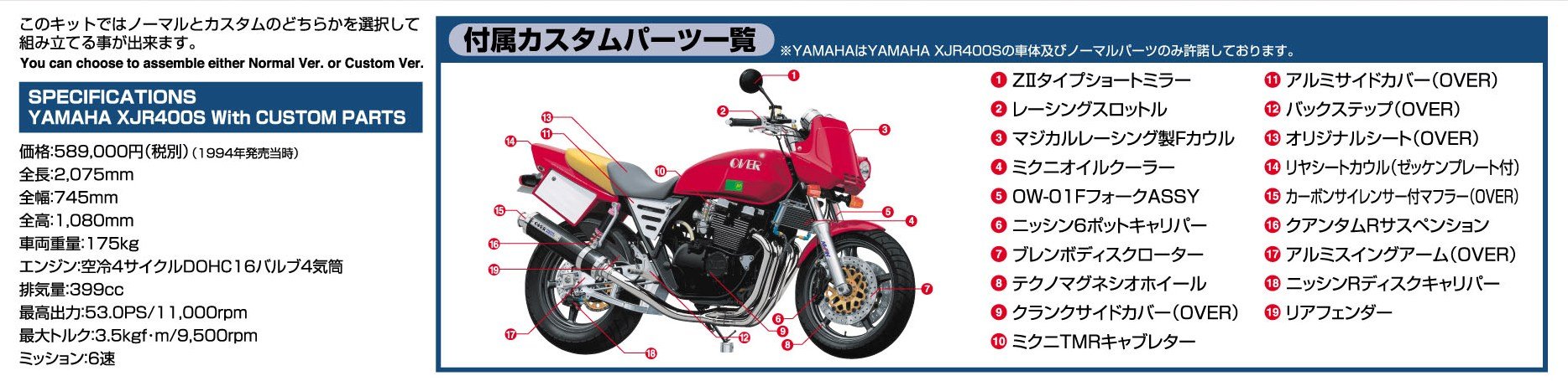AOSHIMA 1/12 Motorcycle | Model Building Kits | No.45 YAMAHA XJR400S w/ Custom Parts [ Japanese Import ]