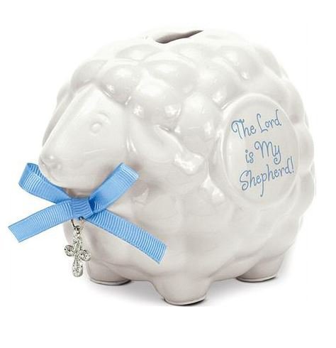Ceramic Baby Lamb Bank with Cross and Blue Ribbon-The Lord Is My Shepherd by Brownlow Gifts