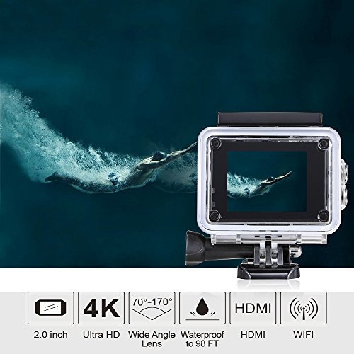 4K WIFI Action Camera Remote Waterproof 30m Underwater Camera Ultra HD 20MP Water Camera With 18 Accessories Kits for Diving,Surfing,Snorkeling,Skiing,Motorcycle,Kids And Water Sports