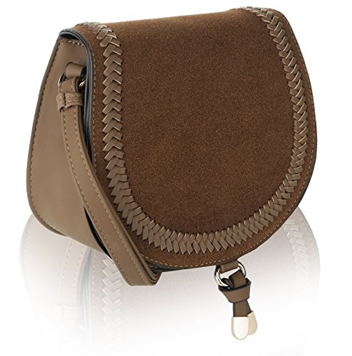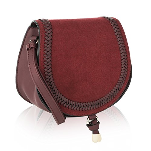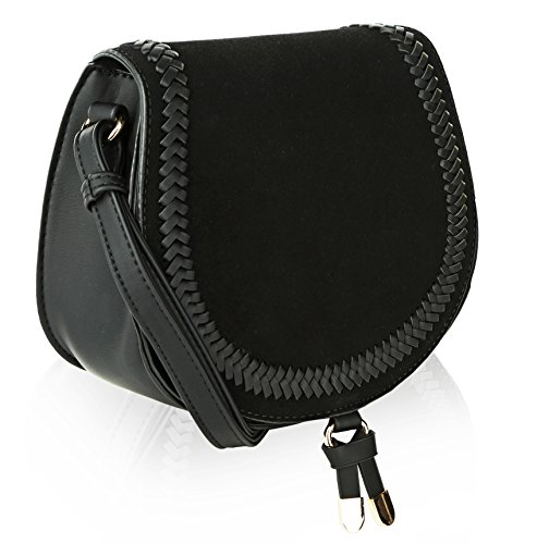 Product Description These designer handbags are part of the MKF Collection by Mia K. Farrow, they're manufactured of high quality soft faux leather giving it durability for long lasting use. This unique and lovely crossbody shoulder bag has a secure zip top and flap closure to keep your daily essentials from falling. MKF Collection handbags always keep interesting interiors in the case of our Simply crossbody shoulder bag the interior features a spacious compartment with a zippered pocket furthermore the exterior is designed with luxurious gold tone embellishment and a braided design around the front border of the crossbody bag. Not to mention that this handbag also has a very comfortable adjustable shoulder strap that adjusts up to 21 inches long. The approximate measurements of this stunning shoulder bag are 7 in H x 8.5 in W x 4 in D. Conveying this gorgeous saddle bag for women will prompt you instant style no matter where you're standing! 0