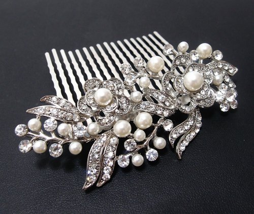 beautiful elegant wedding bridal hair comb pearl and crystal #222 by beautyxyz