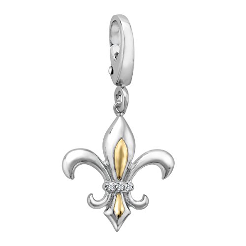 -. Title : Fleur-De-Lis Charm with Diamonds in Sterling Silver & 14K Gold