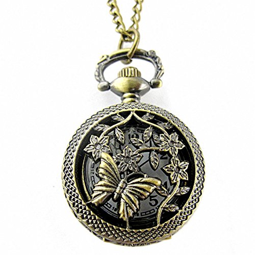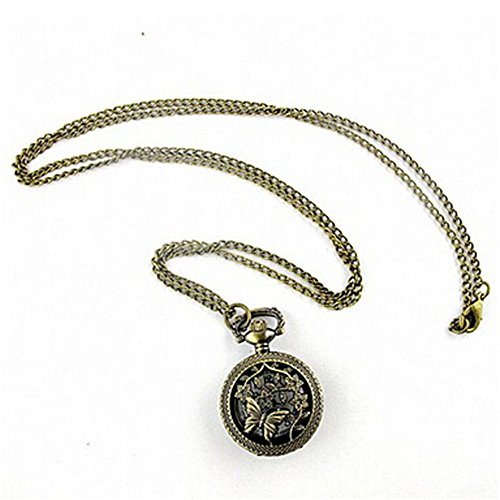 -. Title : BESSKY Openwork Cover Retro Bronze Butterfly and Flower Pocket Quartz Watch