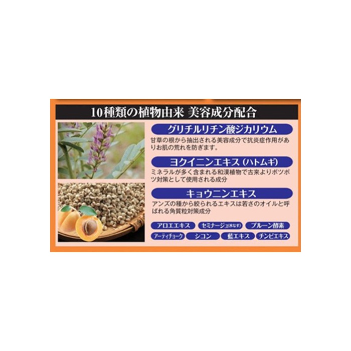 전성분 : 【유효성분】수용성 프라센타(태반) 엑기스,글리시리진산2K 【그 외의 성분】쿄우《닌에키스》,《요쿠이닌에키스》,수용성 콜라겐액,남수 추출액 고, 구연산 고, 구연산 나트륨,글리세린,괭이(뽕나무) 엑기스,아티초크 엑기스,알로에 엑기스(2)고, 에탄올,수 가지 과실 엑기스 고, 규산AlMg,더 에틸렌 새 아민5초산5나트륨액,《시콘에키스》 고, 친《피에키스》,히알론산 나트륨(2) 고, 회 노《기시에타노루》,카 오리《》,산탄검(Xanthan Gum) 고, 펜찌 렌 글리콜,BG,polio《기시부치렌포리오키시에》