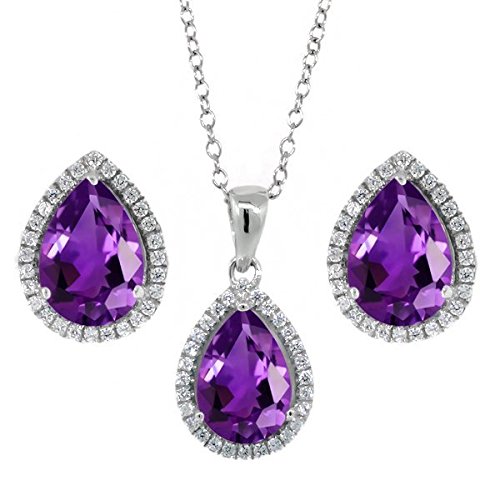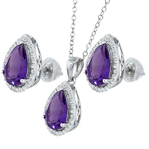 -. Title : 6.00 Ct 10X7mm Amethyst Pear Shape Pendant Earrings Sterling Silver Set