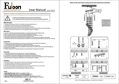 Fuloon Modern Crystal Ceiling Lamp Chandelier Pendant Lighting Fixture (A (20x37cm/7.9x14.6in))