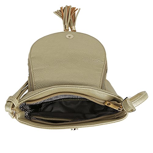 Product Description These designer handbags are part of the MKF Collection by Mia K. Farrow, they're manufactured of high quality faux leather giving it durability for long lasting use. This unique and lovely crossbody shoulder bag has a secure zip top and magnetic snap closure to keep your belongings from falling. MKF Collection handbags always keep interesting interiors in the case of our Haroly crossbody shoulder bag the interior features a spacious compartment with slip in and zippered pockets. Exterior features three front zippered pockets. Furthermore, the exterior is features a back zippered pocket and a front zipper with double sliders pocket and designed with luxurious gold tone embellishments. Not to mention that this handbag also has a very comfortable adjustable shoulder strap, adjusts up to 24 in. The measurements of this stunning shoulder bag are 8 in L x 7 in H x 4 in D. Conveying this gorgeous crossbody bag for women will prompt you instant style no matter where you're standing. 0