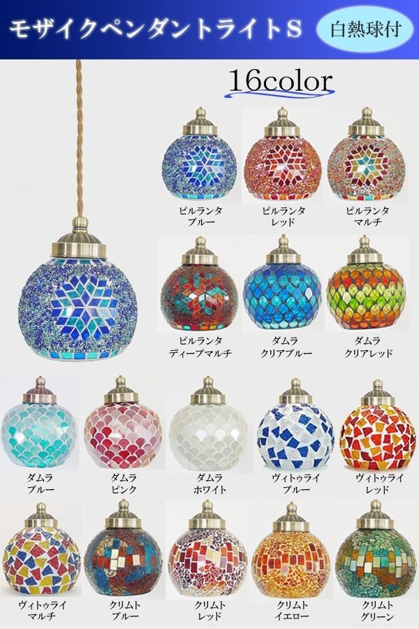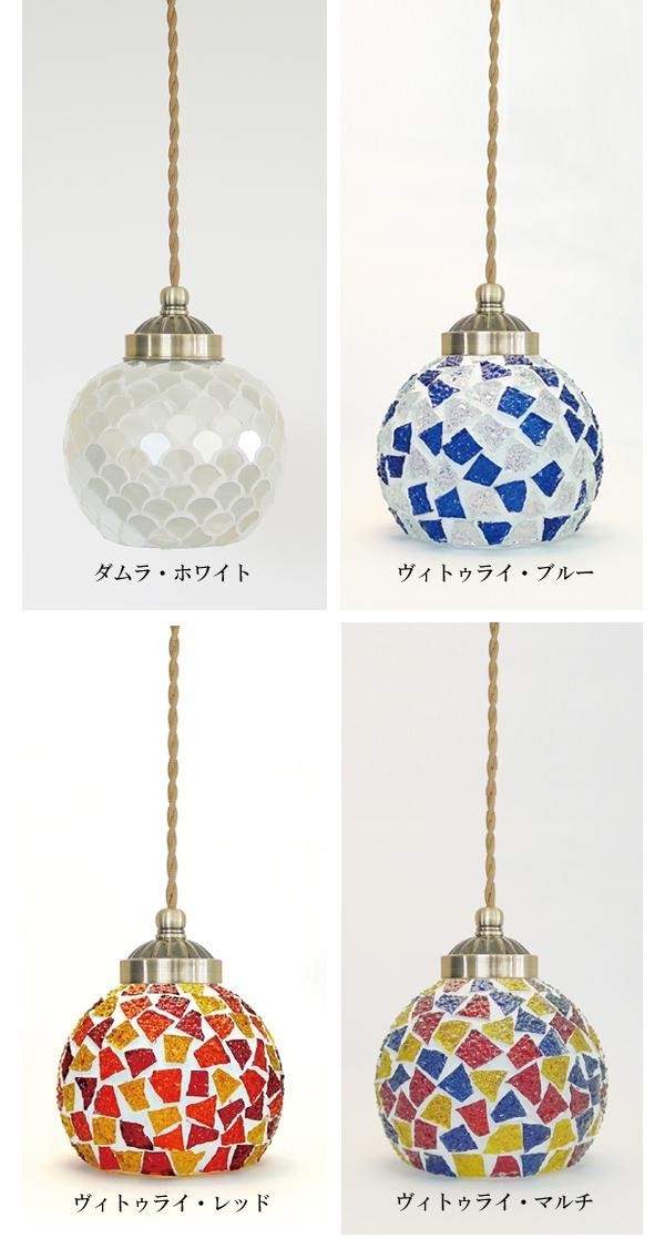 | 色鮮やかな明かりが幻想的な空間を演出するモザイク模様のペンダントライトです。日中明かりを消した状態でも華やかでインテリアとしてもお洒落。アジアンテイスト、エスニックテイストのお部屋にはもちろん、シンプルなお部屋にアクセントとして取り入れるのもオススメです♪ |