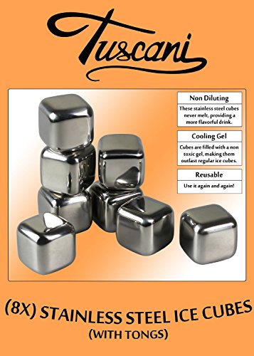 -. Binding : Kitchen -. Brand : HealthPro -. Color : NIL -. EAN : 0885322136718 -. Feature : Stainless steel ice cubes always is packaged in the HealthPro retail packing. Be careful of counterfeits, they are not food-grade and tested like HealthPro cubes are. / Food-grade stainless steel liquid-filled cubes are a non-diluting alternative to ice / Keep fine liquor ice-cold without losing flavor / Great for whiskey, vodka, liqueurs, white wine and more / Place in the freezer for approximately four hours before use -. IsAutographed : 0 -. Label : HealthPro -. Manufacturer : HealthPro -. Model : Icecubes -. MPN : TUSC-CUBES -. PackageQuantity : 1 -. PartNumber : TUSC-CUBES -. ProductGroup : Kitchen -. ProductTypeName : HOME -. Publisher : HealthPro -. Studio : HealthPro -. Title : Tuscani 8 Stainless Steel Reusable Ice Cubes with Tongs -. UPC : 885322136718
