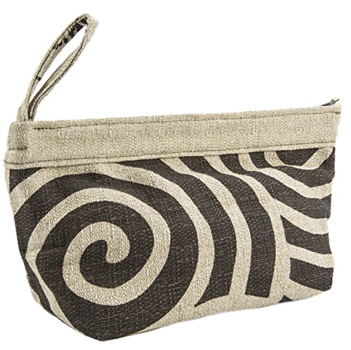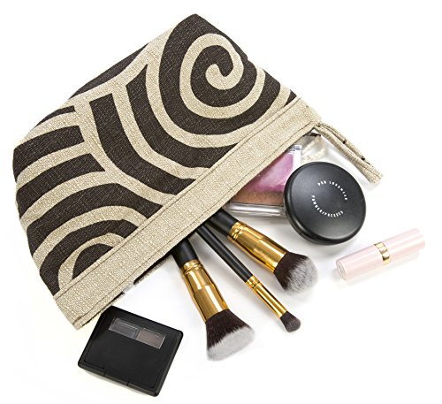 Flower Child: “The Yamuna” Portable Cosmetic Toiletries Bag – Swirl Patterns with Taupe Trim – Easy Clean Liner – Double Stitched Heavy Fabric –...