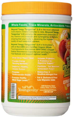 -. Binding : Health and Beauty -. Feature : 480 G CANISTERS. / over 8000 ORAC, certified organic ingredients, and synergizing cofactors to maximize vitamin and mineral uptake / he most advanced multi-vitamin mineral complex on the market / energy boosting nutrients / PuriGenicTM antioxidant support, -. ProductGroup : Health and Beauty -. ProductTypeName : HEALTH_PERSONAL_CARE -. Title : Beyond Tangy Tangerine 2.0 CITRUS PEACH FUSION - 450 G CANISTER