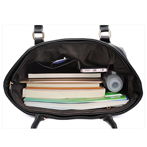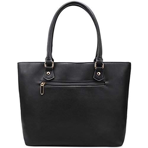 -. Feature : High Quality Black Purse-Vegan Leather Handbags, soft and durable. Top zip closure / Unique Cutouts Design-A chic element to handbags for girls, designed for elegant and modern women / Golden Metal Hardware-Shiny and sparkly hardware decorations, show the high-end quality of the handbags for women / Roomy and well organized Purse-1 main pockets, 1 zipper inner pocket, 2 interior slots for pens, keys, etc. Backside features 1 zip pocket. Approximate Dimensions: 12.6"L x 5.1"W x 11"H, handle drop: 9.5" / Great Gift Idea- High quality and gorgeous looking, makes a great gift for sisters, friends and anyone who loves designer handbags