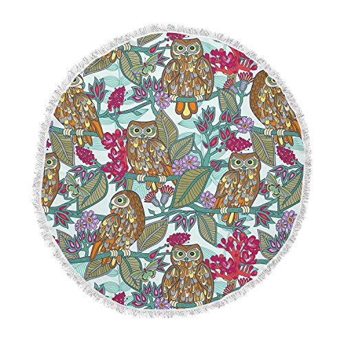 KESS InHouse Julia Grifolmy Bookbooks Owls Brown Blue Round Beach Towel Blanket