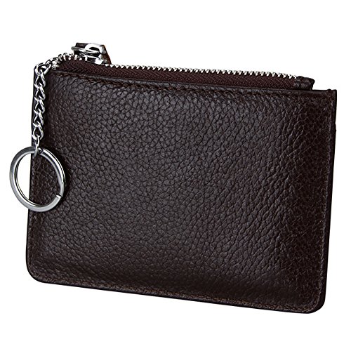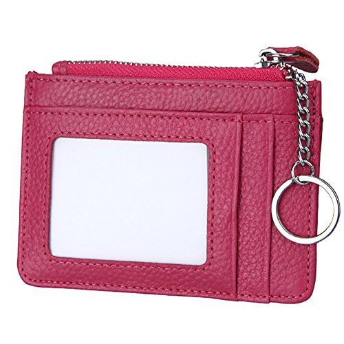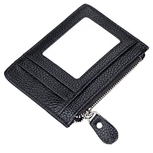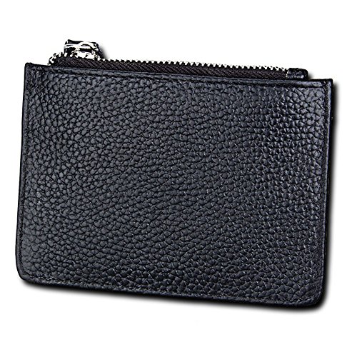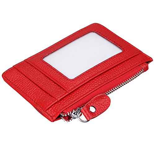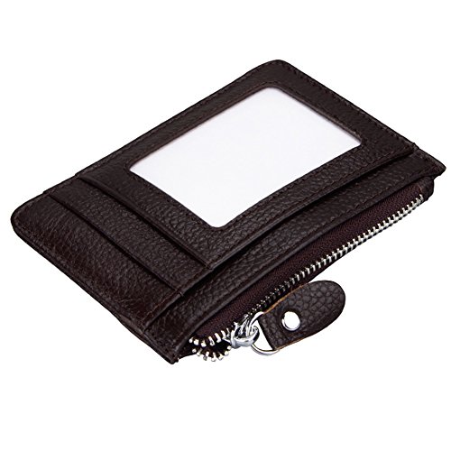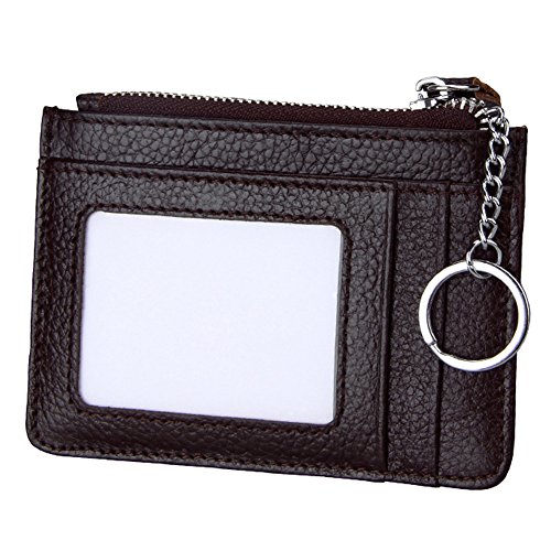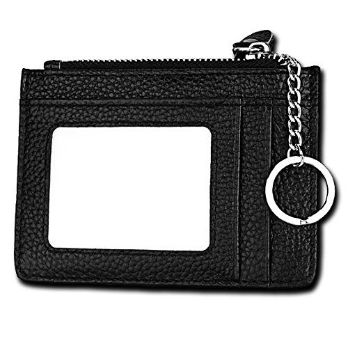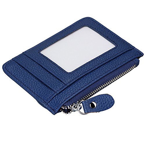 -. Feature : RFID BLOCKING: It can stop electronic pickpocketing with its RFID blocking lining materials, keep your card information from electronic theft by blocking RFID. / 100% Cowhide Genuine Leather, polyester fibre lining. / Compartments: 3 card slots, 1 zipper coin pocket.1 key ring. / Dimensions: 4.33L"x3.39W"x0.20H",weight: 0.15LB, thin and light.Fit your pants / front pocket well. / Applicable occasions: Suitable for any age, apply to men and women.