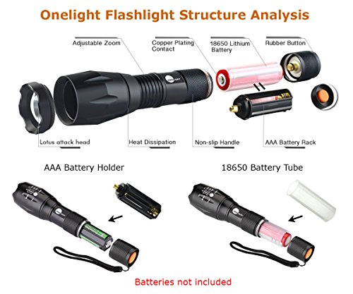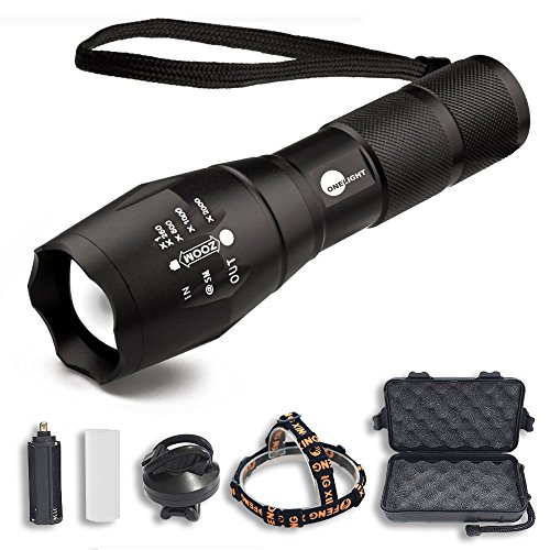 Onelight Universal Flashlight (3 in 1): Handheld Tactical Flashlight + Headlamp (Head Belt Mount Holder) + Bike Light (Bicycle Mount Holder, Gun Mount Holder)