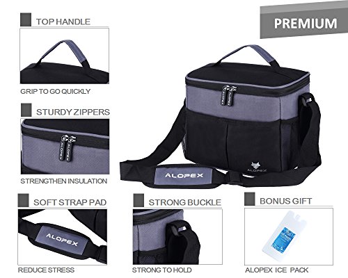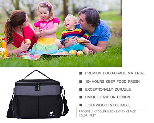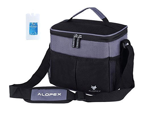 - Keep Food Safe and Fresh:ALOPEX made lunch bag with durable and sturdy 100% 600D oxford and the interior lining was constructed with food grade aluminum foil and padded with 8mm EPE foam for great thermal resistance.It has been tested to keep food fresh for 10+ hours under the right temperature.It can be easily cleaned by wiping with a damp towel.Bonus gift "ice pack" instead of ice as a solution for reducing the risk of leak when you keep cold drink,cheese,milk,etc.