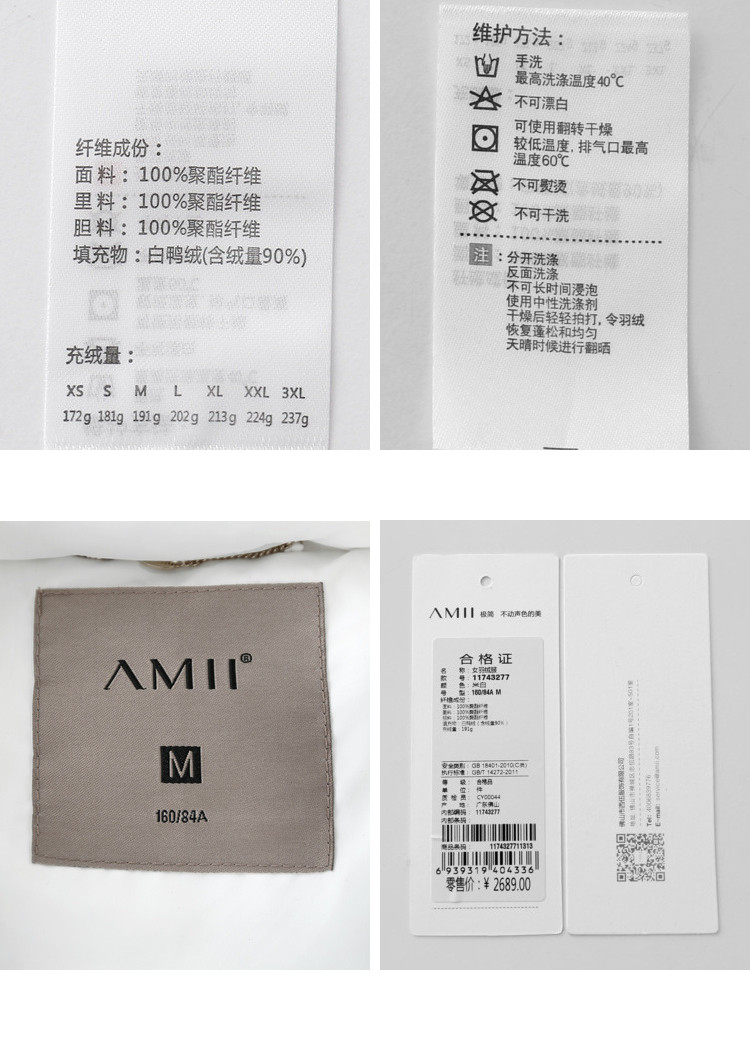| 洗涤标准: | 不可浸泡不可熨烫不可干洗不可漂白40℃以下手洗 |