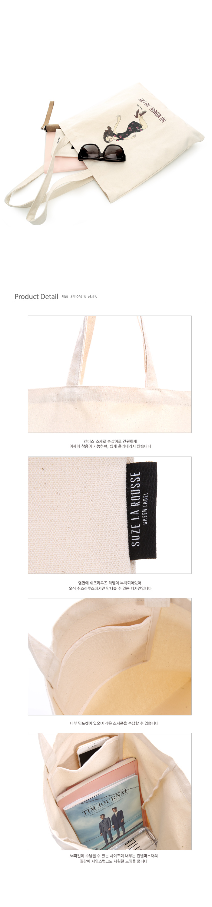 ㆍsize(cm) : 36(W)X40(H), 24(shoulder_height)ㆍmeterial :(canvasㆍweight : 180g ㆍcolor : ivory ㆍMade in Korea
