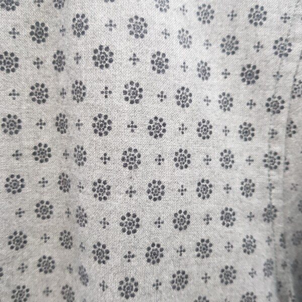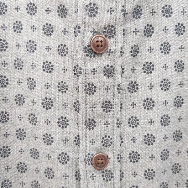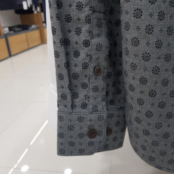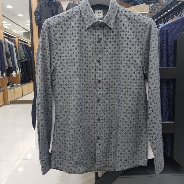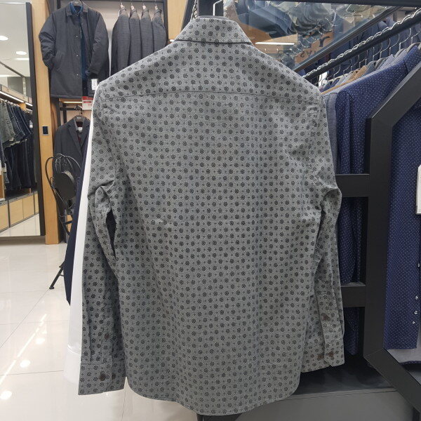 면소재 기본캐주얼셔츠로 그레이컬러에 블랙의프린트가 멋스러워보이며 레이어드하기 좋음