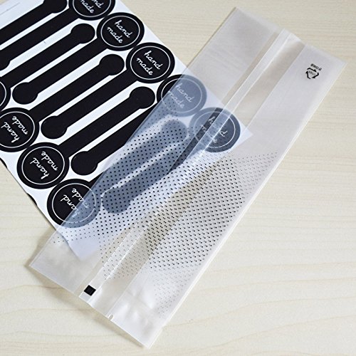 - Gift And Baking Accessories Packing Supplies: Package included 100 black dot cellophane treat bags and 100 black handmade labels stickers (10 sheets seal stickers, 10 handmade stickers on each sheet).